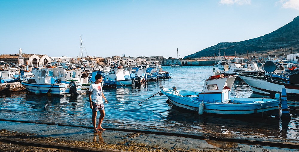 Il modo migliore per visitare l’isola, oltre alla bicicletta, è quello di prendere a noleggio una barca. Durante la giornata, dopo esserti rinfrescato con un bel tuffo nelle cale di Favignana, parti per l’isola di Levanzo. Non è molto distante ed è davvero speciale: il porticciolo è circondato da case bianche e persino l’acqua del porto è così trasparente che, da alcune angolazioni, pare che le barche siano sospese nel nulla.