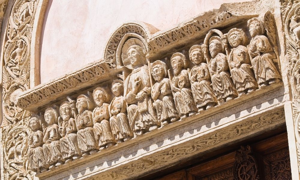 La Basilica di Santa Caterina d’Alessandria si trova nel cuore del centro storico di Galatina ed è uno degli esempi più belli di arte gotica e romanica della zona. Venne fatta costruire per volontà di Raimondo Orsini del Balzo, principe della contea di Soleto (da visitare se ti interessa esplorare anche la Grecìa Salentina) nel 1391. All’interno della Basilica è possibile anche vedere una reliquia di Santa Caterina che secondo la leggenda venne strappato con i denti da Raimondo in persona. L’interno della basilica è decorato con fantastici affreschi che ritraggono scene dell’Apocalisse, della Genesi e i Sette Sacramenti, oltre ovviamente la storia di Santa Caterina. Sono davvero incredibili e lasciano senza fiato.