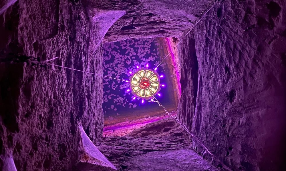 All’interno del pozzo c’è ancora l’acqua e si può guardare al suo interno dove è stata inserita una luminaria con il logo della taranta che rappresenta proprio una tarantola con il corpo a forma di cuore. Tra l’altro ogni estate, proprio fuori da questo palazzo, si svolge lo storico concerto per la notte della taranta che attira migliaia e migliaia di persone ogni anno.