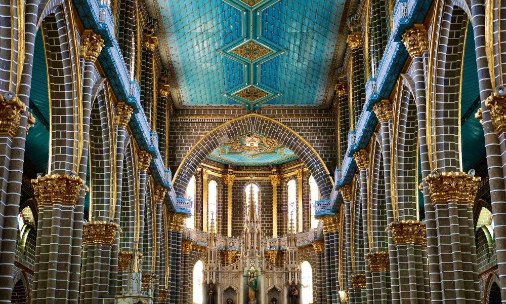 Tutto intorno la piazza troverai edifici coloratissimi e diverse caffetterie ma anche la splendida Basilica de la Inmaculada Concepción, una chiesa neogotica costruita nel 1949 con un soffitto in legno dalle mille sfumature di blu.