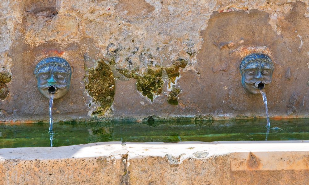 La struttura è davvero affascinante, con grandi vasconi un tempo usati come abbeveratoi o lavanderia dagli abitanti di Laterza. Proprio accanto alla Fontaci ci sono i resti di quello che era un piccolo acquedotto di epoca romana, ma la cosa che affascina più di tutti sono sicuramente i mascheroni apotropaici in bronzo da dove sgorga l’acqua fresca. I mascheroni sono tutti in bronzo tranne uno che ha mantenuto l’aspetto originario in pietra.