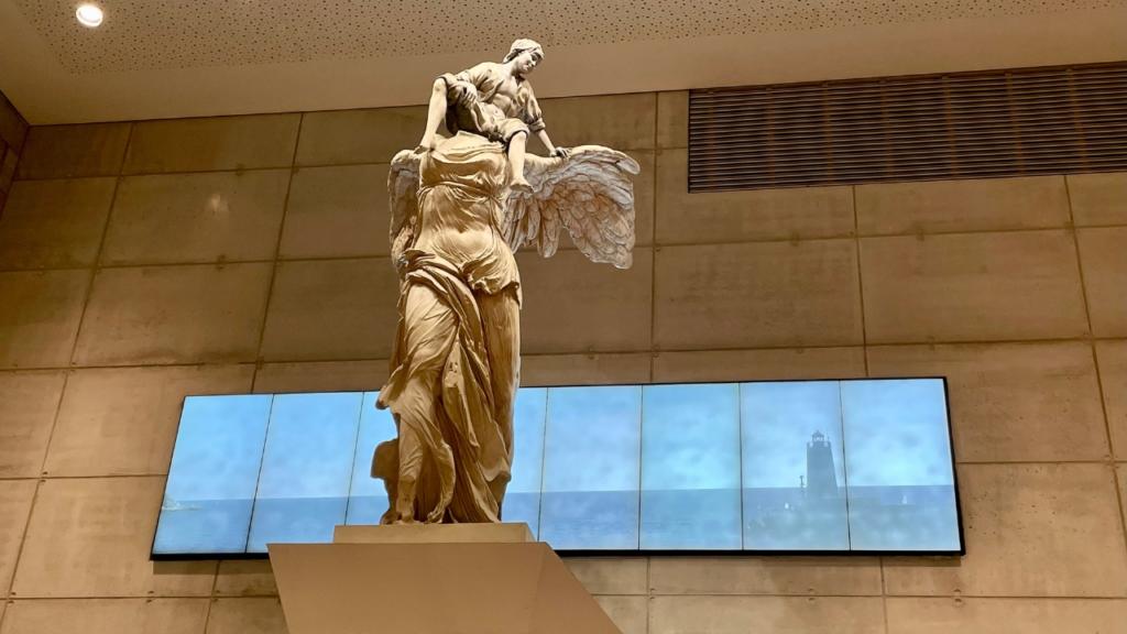 Realizzata da Ernest Pignon Ernest, questa statua è quella della Nike alata che si può vedere al Louvre con a cavalcioni un piccolo Garibaldi, nato proprio qui a Nizza. La Nike è la dea che ha dato il nome a Nizza e alle sue spalle si possono vedere degli schermi con le immagini in diretta del porto, quasi sia messa lì a protezione della città.