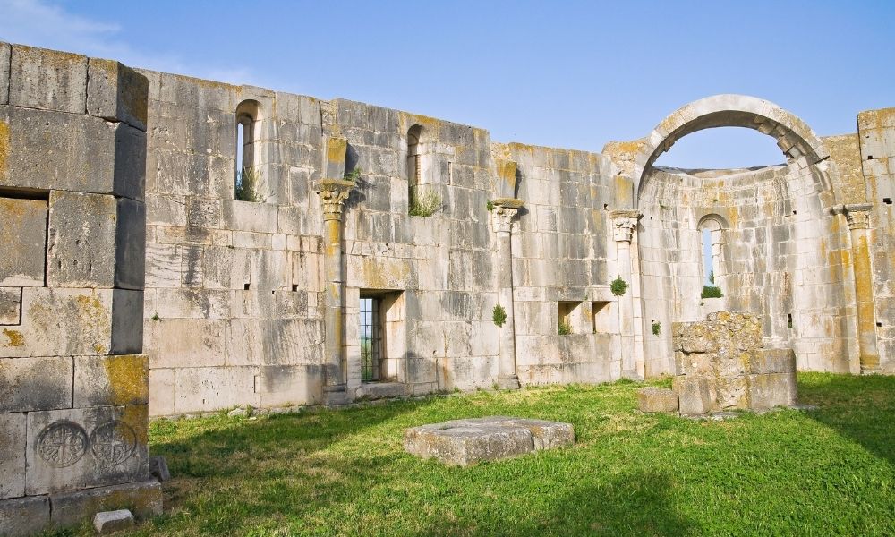 Proprio alle spalle dell’Abbazia della Santissima Trinità si trova l’incompiuta di Venosa, ovvero l’abbazia nuova che però non è mai stata terminata. Questo luogo è un posto quasi mistico. Si entra nella struttura che però non ha il tetto e nemmeno il pavimento, ma tutto attorno è possibile vedere la costruzione dell’Abbazia con le sue immense colonne e le torrette costruite a metà. Soffermati a vedere i materiali utilizzati per costruire l’abbazia. Tutte le pietre sono state prese dagli scavi romani e dal cimitero ebraico che si trovava lì vicino, perciò nelle mura della struttura è possibile vedere scritte in latino e stelle di David, le une accanto alle altre.