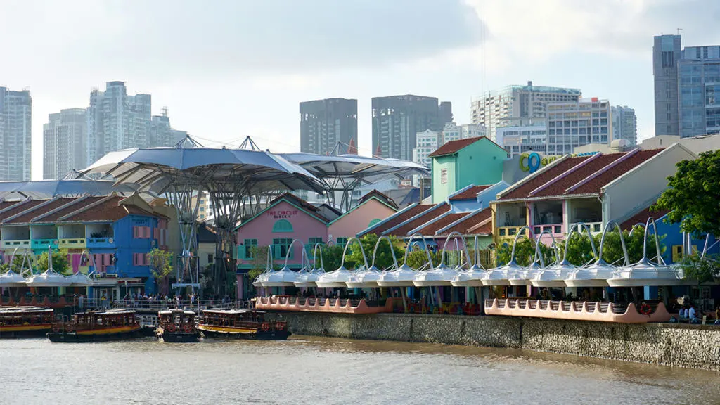 La zona chiamata Riverside con i locali e le case tradizionali di Singapore