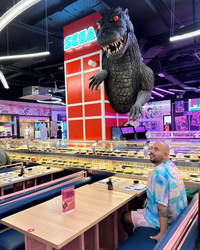 Partiamo da una premessa, questo non è il miglior sushi di Madrid ma sicuramente il ristorante giapponese più strano che visiterai qui. Ad accoglierti ci sarà un grande Godzilla (proprio come quello di Shinjuku a Tokyo), un set dove è stata ricreata la metropolitana di Tokyo e anche una sala giochi con i famosi gatchapon! Il sushi è a nastro, a prezzo fisso e la qualità non è eccellente ma vale la pena per vedere questo ristorante così particolare!