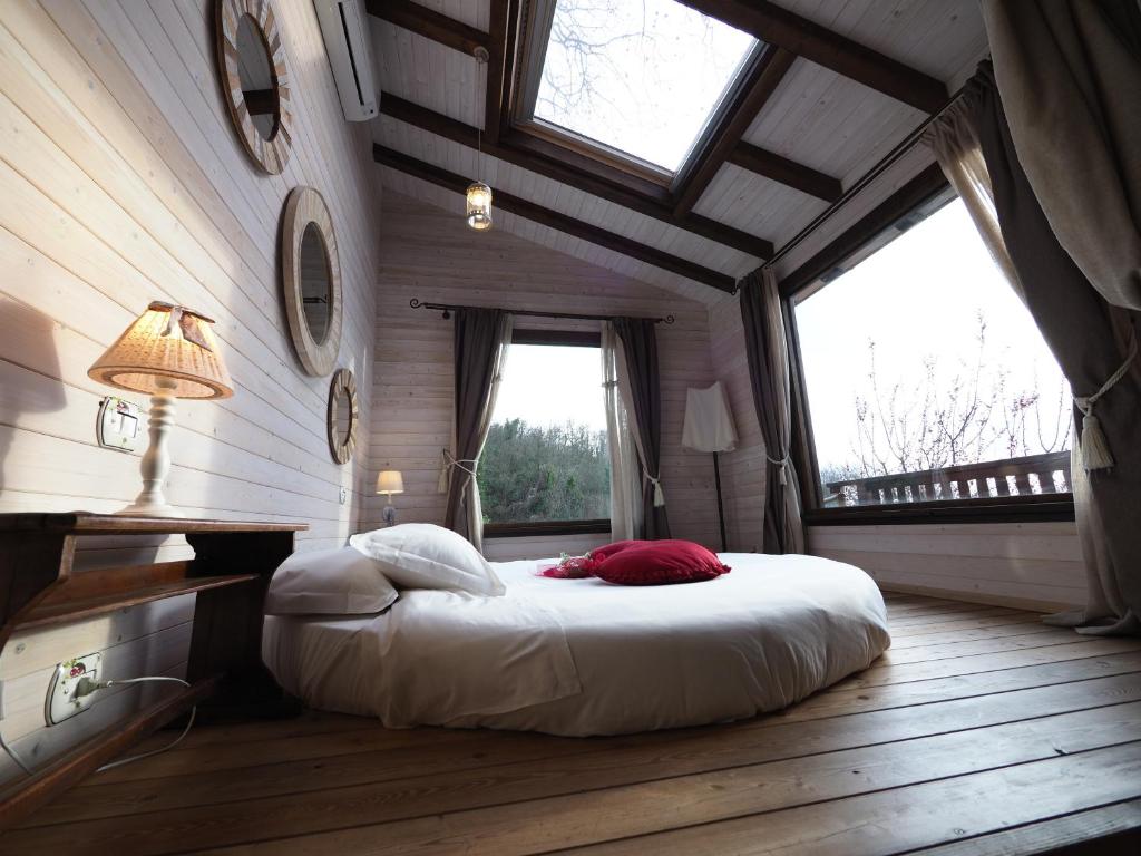 Oltre a essere estremamente rispettoso della natura ed ecosostenibile, l’EcoResort Cantico della Natura ha una stanza davvero incredibile, realizzata in legno, con un grande letto rotondo al centro e un soffitto fatto in vetro per farsi cullare dalle stelle. Un luogo incredibilmente romantico per una notte indimenticabile! Inoltre, specialmente quando fa caldo, qui troverai una bellissima piscina all’aperto con un panorama mozzafiato, e oltre a questi momenti di benessere e relax potrai anche assaggiare ottimo cibo con prodotti locali di altissima qualità.