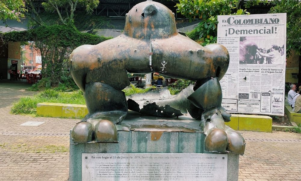 Si tratta della statua dell’Uccellino all’interno della quale il 10 giugno 1995 venne inserita una bomba e a seguito di questo attacco morirono 231 persone. Botero accettò subito di sostituire l’opera, a condizione che però fosse esposta insieme ai resti della copia distrutta. Entrambi sono attualmente in questa bella piazza. In genere in questa piazza si passa con qualsiasi free tour di Medellin, proprio per conoscere la storia del luogo.