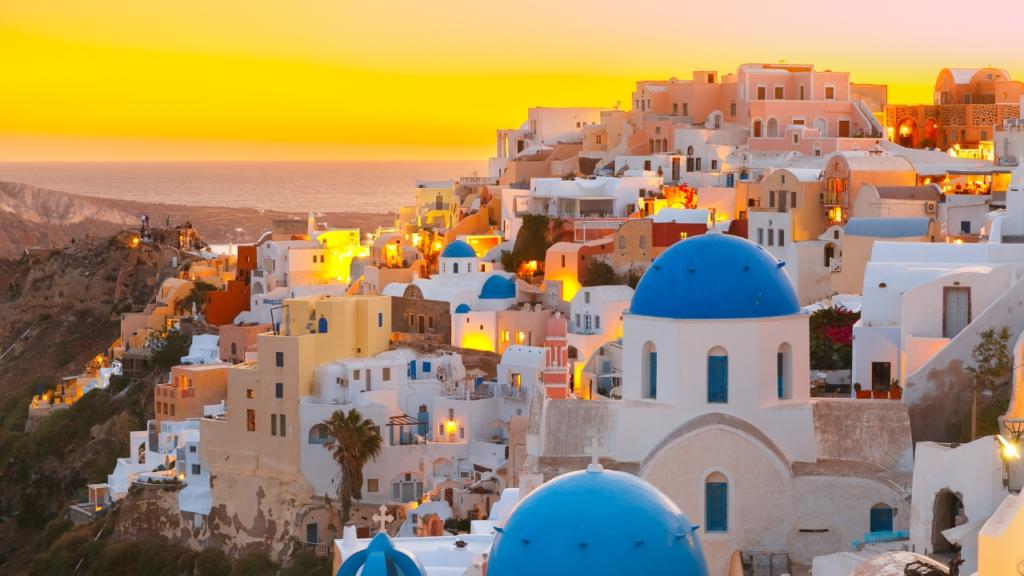 Santorini e il suo iconico tramonto visto dalla città