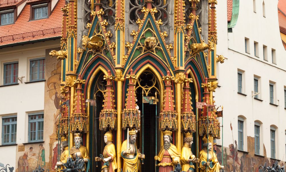 Sempre nella piazza del mercato si trova una delle fontane più famose d’Europa: la Schöner Brunnen o tradotto in italiano la Fontana Bella. La fontana, alta circa 20 metri, è una riproduzione del 1912 dell’antica fontana ed è una bella guglia gotica finemente decorata.