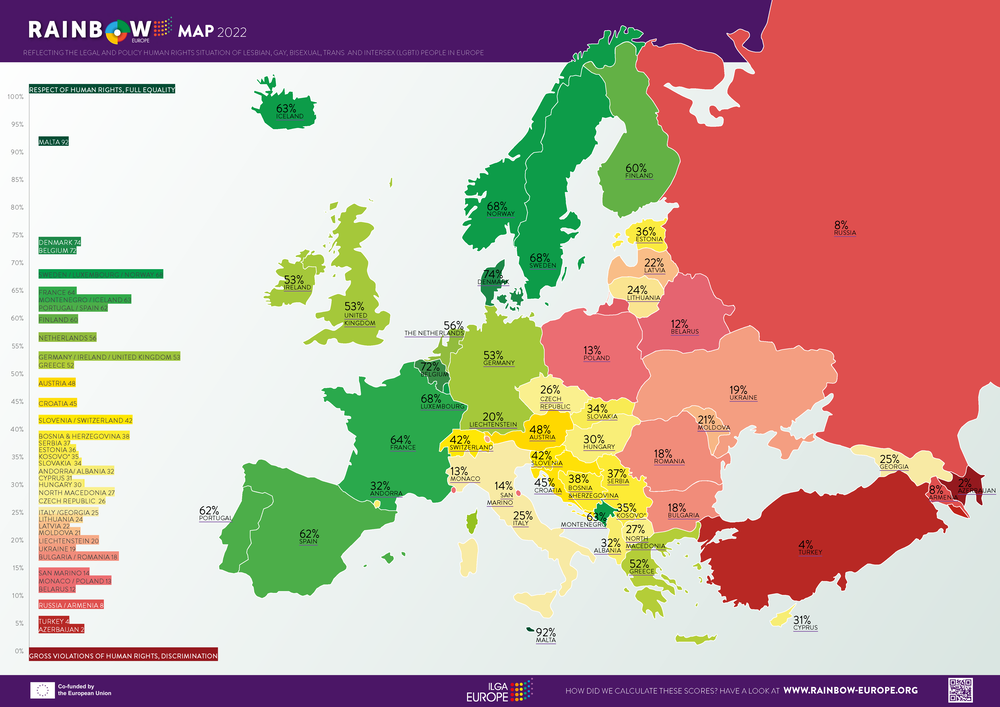 Puoi controllare tutte le categorie nel dettaglio sul sito di Rainbow Europe 2022.