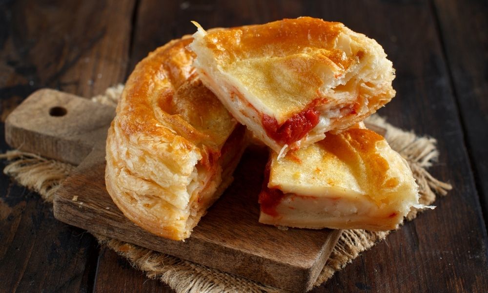 Il rustico leccese con ripieno di besciamella e pomodoro
