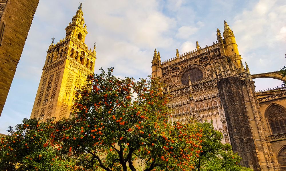 La Giralda, il grande campanile della Cattedrale di Siviglia, è uno dei luoghi iconici della città e uno dei pochi luoghi rimasti dell’antica moschea che prima si trovava in questo luogo.