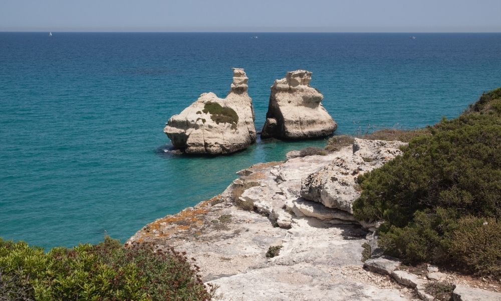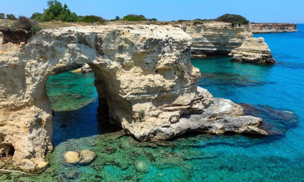 I Faraglioni di Sant’Andrea sono un altro dei simboli del Salento, grazie all’enorme arco di pietra circondato da un mare di un colore che va dal turchese al verde acqua. I Faraglioni, anche se sono uno dei luoghi più belli di tutta la costa adriatica, non sono mai un posto molto affollato, anche perché qui non ci sono servizi di nessun tipo e soprattutto non ci sono spiagge. In acqua si entra con un tuffo o tramite una scaletta che si trova sugli scogli, e se ci si vuole rilassare ci si deve mettere direttamente sulle pietre, ma ne varrà assolutamente la pena. È però importantissimo portare delle scarpe per gli scogli, per evitare di tagliarsi i piedi sulla roccia, e portare anche bibite e del cibo, perché non ci sono bar o ristoranti, se non qualcuno vicino il parcheggio.