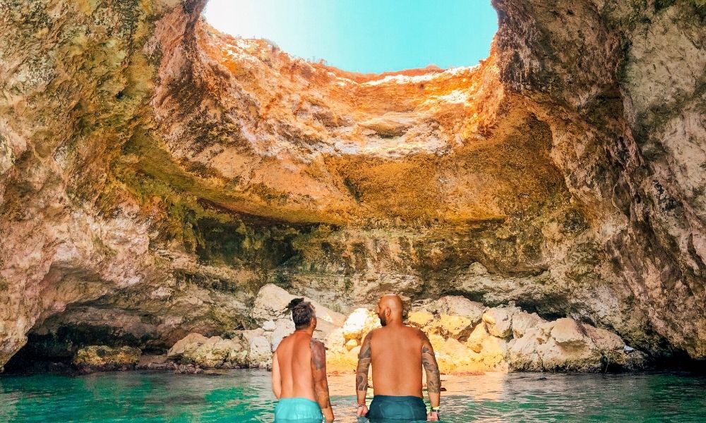 Un tempo segreta, adesso la baia del Mulino d’Acqua è una delle spiagge (e grotte) più amate e visitate del Salento. La piccola baia del Mulino d’Acqua si può la momento raggiungere solo con una barca o in kayak e sup, ci sono molti sup gonfiabili ed economici che si possono portare in viaggio, mentre in passato, e tutt’ora qualcuno lo fa, si usava un passaggio che si trova all’interno di un camping proprio alle spalle della baia. Ma la parte più bella di questa baia è la grandissima “grotta sfondata”, una grotta con un foto sul soffitto da cui entrano raggi di sole che illuminano questo spazio come se ci si trovasse in una grande cattedrale naturale. Visto che per raggiungere la Baia del Mulino d’acqua potrebbe essere complicato, abbiamo realizzato una guida completa con tutte le info che ti servono per raggiungere la baia e tutte le attività che puoi fare in questo luogo.