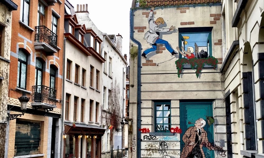 In rue de l’Étuve potrai vedere Tintin, Milù e il capitano Haddock, mentre scendono lungo la scalinata oppure poco distante i personaggi di Olivier Rameau o ancora l’iconico murales di Schuiten.