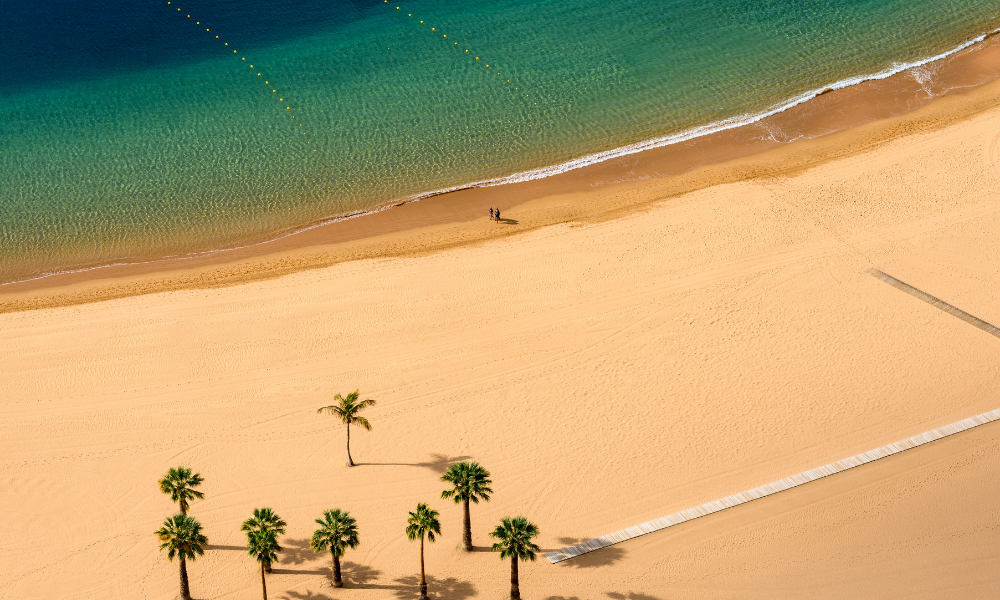 Playa de La Teresitas si trova poco sopra la capitale di Tenerife, Santa Cruz. Si tratta di una lunga distesa di sabbia dorata con palme e stabilimenti balneari dove non manca nulla per fare in modo che questo diventi il posto perfetto per rilassarsi al mare. Le acque qui sono sempre calme e cristalline grazie alla barriera artificiale che ripara la baia. Tutto intorno alte scogliere e il colorato paese di Sand Andrès rendono questa spiaggia una delle più belle dell’isola.