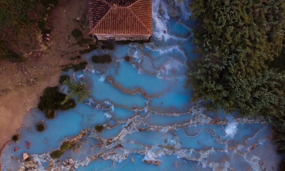 Le Cascate del Mulino sono le terme di Saturnia libere e fortunatamente hanno un’accessibilità gratuita. Tra cascatelle scintillanti, fanghi terapeutici e acque termali rinvigorenti, le Cascate delle Terme di Saturnia sono una vera e propria oasi di relax e benessere. La particolarità di queste terme libere toscane è che sono aperte al pubblico 24 ore su 24, permettendo a tutti di godere di momenti di tranquillità in qualsiasi momento della giornata.