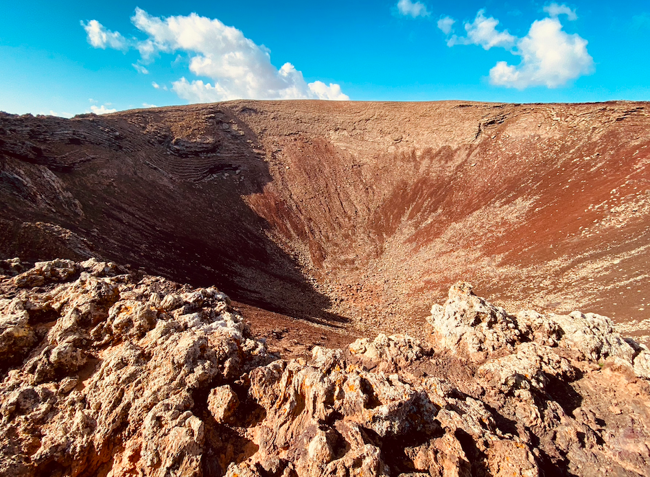 Il paesaggio che vedrai facendo questo trekking è molto suggestivo grazie ai colori del terreno che qui vanno dal nero al rosso intenso. Una volta raggiunta la cima del vulcano troverai un piccolo “terrazzino” con una balaustra da cui vedere l’interno del cratere in totale sicurezza. Inoltre da qui potrai vedere dall’alto gran parte del nord di Fuerteventura ma anche l’isola di Lobos.