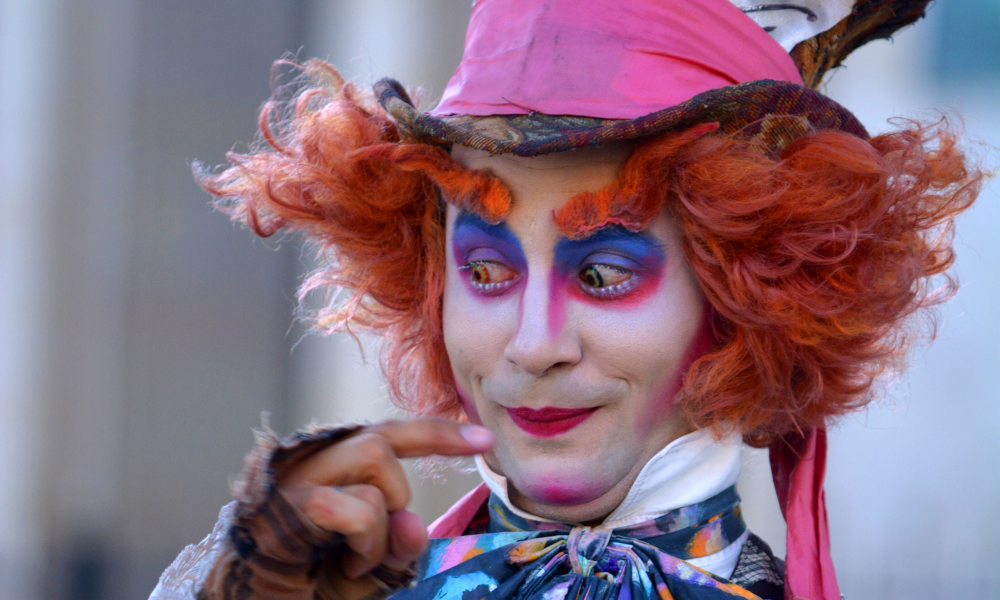 In quanti non hanno amato il bellissimo personaggio impersonato da Jonny Deep in Alice nel paese delle meraviglie di Tim Burton? Ricreare il trucco del Cappellaio Matto potrebbe sembrare complesso, ma con un po’ di pazienza si riesce senza particolari difficoltà. La base è quella chiara del clown ma meno accentuata e si utilizzano per il viso ombretti nei colori del verde e del blu per gli occhi. La parrucca rigorosamente rossa!