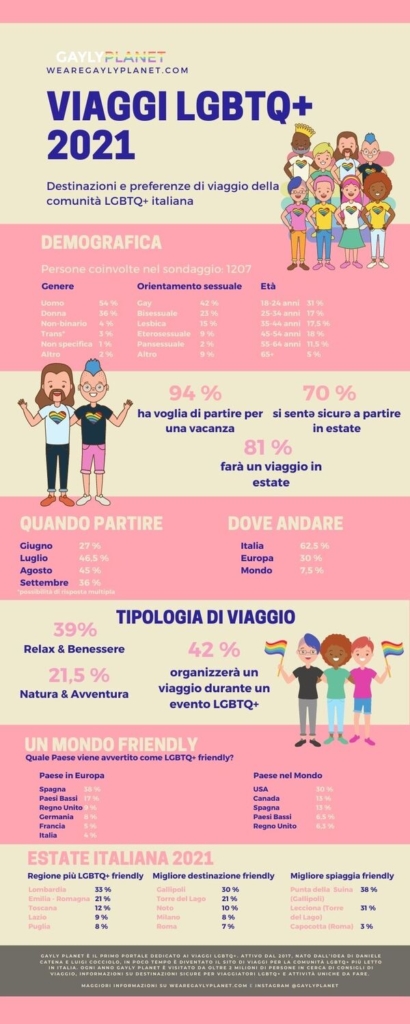Infografica con i dati del sondaggio sui Viaggi LGBTQ+ – Estate 2021